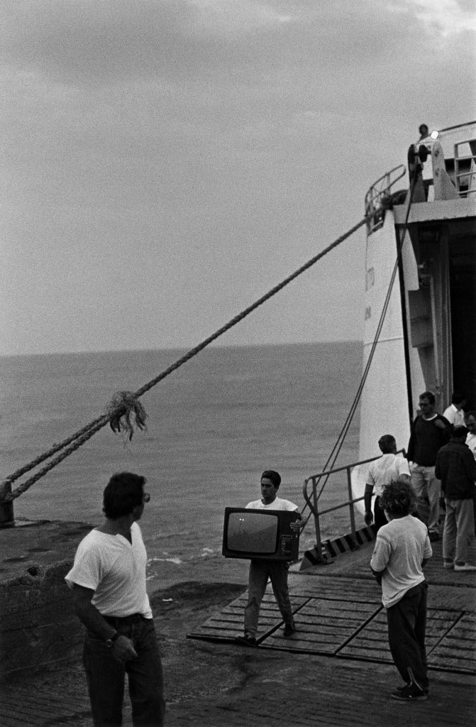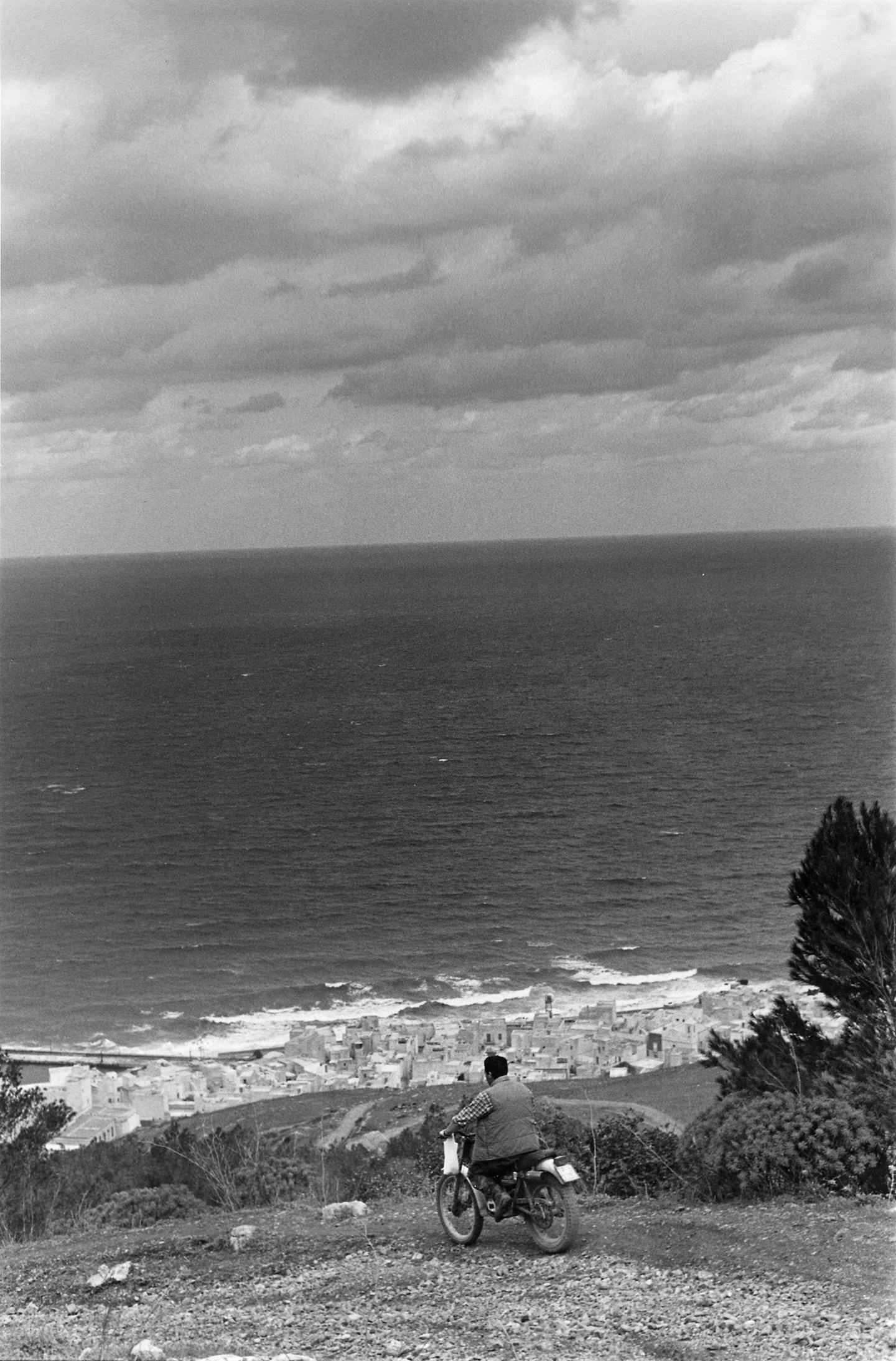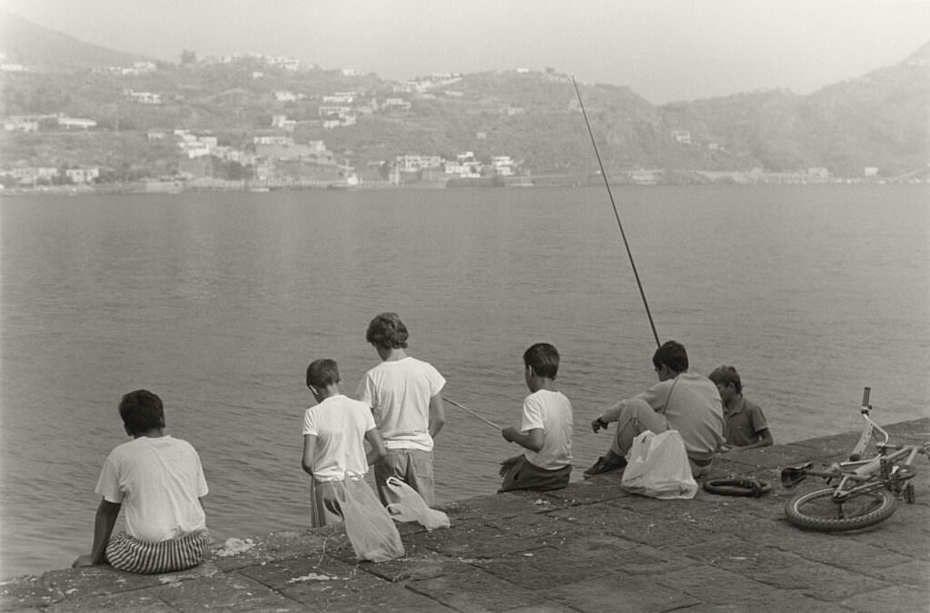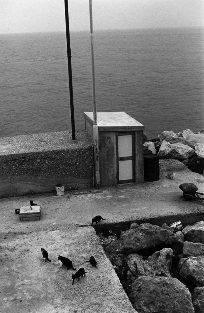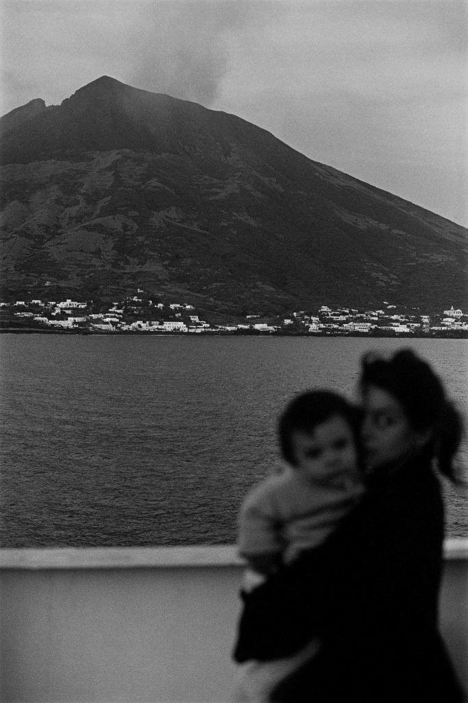 The story began in 1987 with a stay in Stromboli, made possible by the French Institute in Naples. The following year Plossu returned to the Aeolian Islands, settling for a period in Lipari with his wife, photographer François Nuñez, and their son. From that initial anchorage the itinerary gradually widened, extending to other islands without a rigid plan, guided instead by circumstance and by the simple act of walking. What emerged over time was less a project than a practice—an ongoing dialogue with wind, salt air, harsh light, and the measured rhythm of insular life.