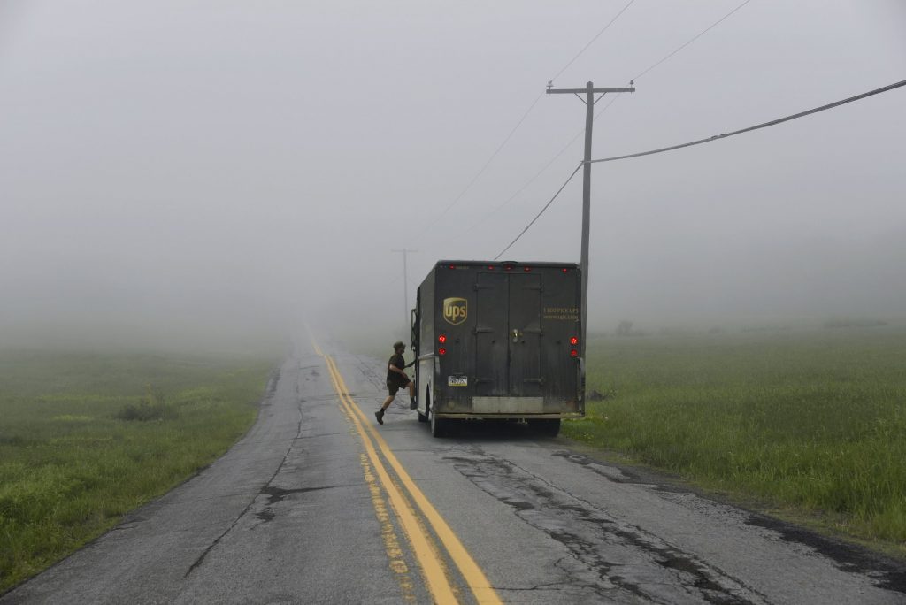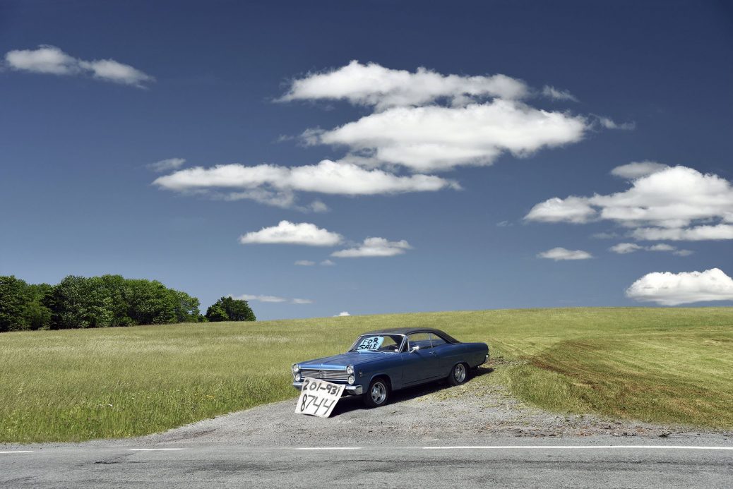 For both artists, autonomy and unstructured time were essential to their practice. Alongside a strong sensitivity to color, their work demonstrates a profound sense of place. DeLattre—best known for her series Shoppers, street photographs of women on New York City’s Upper West Side made between 1979 and 1980—has more recently turned to landscape photography in Wayne County, Northeast Pennsylvania. As she describes it, these images depict “not the postcard version of America but a quieter, lonelier one—the rural stretch of land between towns, the openness, the houses… all very American, but in solitude.”