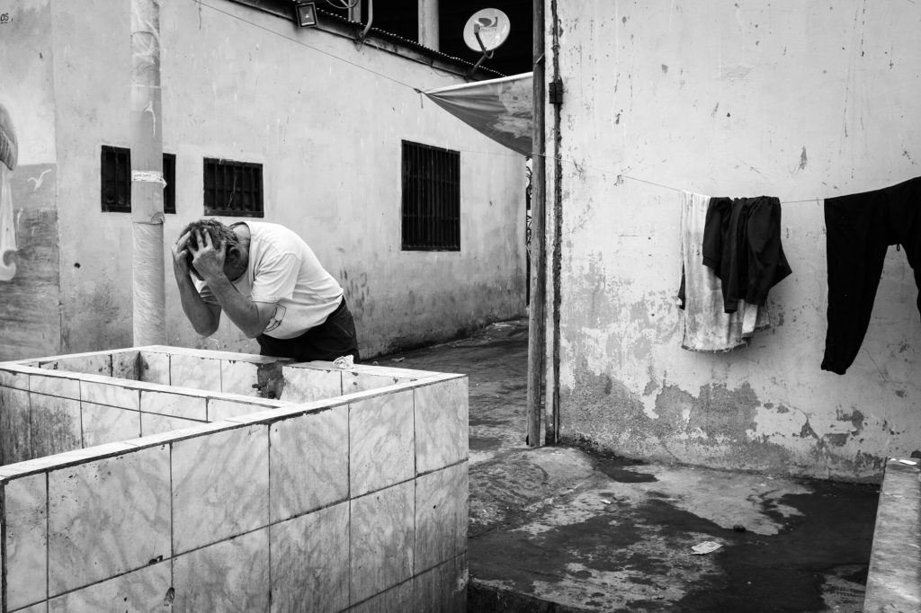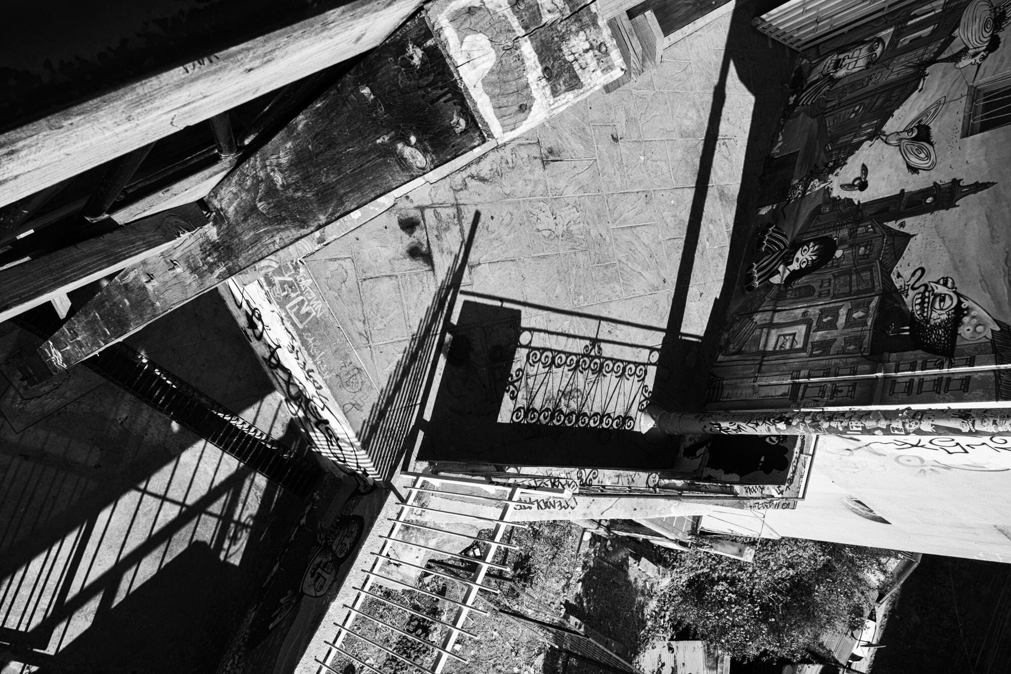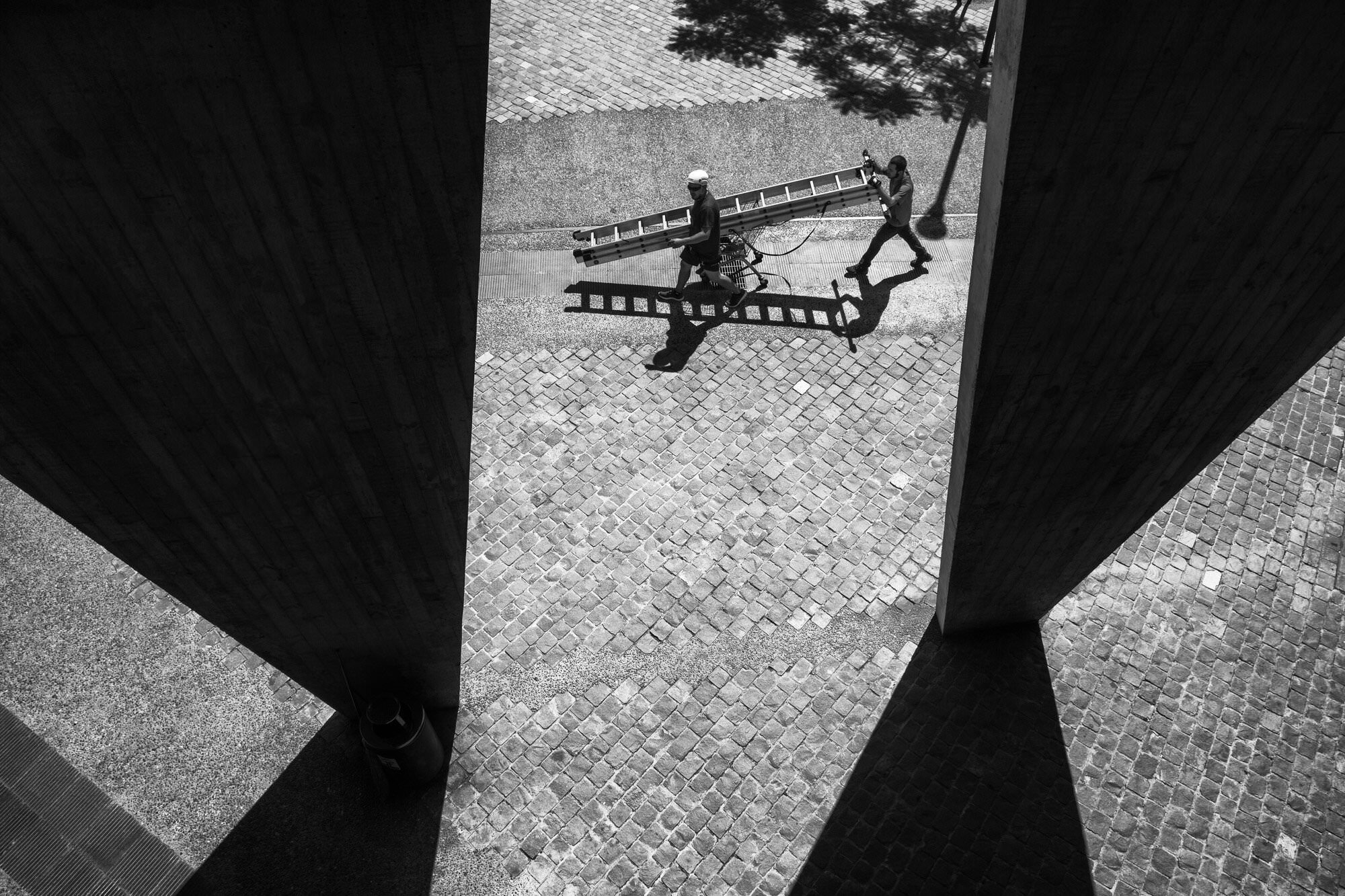 Stripped of the seduction of color and the familiarity of postcard imagery, Éléonore Simon’s black-and-white photographs allow the city to emerge in a suspended, uncertain time. Gestures, situations and fragments appear without resolving into clear narratives. People pass through the frame almost unnoticed; urban spaces and bodies are partially hidden, cut by railings, walls or shadows; the sea appears only in glimpses. The sharp coastal light becomes a protagonist of its own—cutting through surfaces, concealing and revealing—shaping the images as much as the precarious architecture of the hills, while constantly shifting the viewer’s perception.