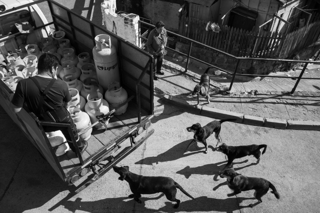 Volver o volar—to return or to fly away—captures the quiet tension running through the series, echoing the artist’s own experience of movement between places. After spending several years in Valparaíso, Simon photographs the city from a position that is neither fully inside nor completely outside, a place defined by curiosity, distance and attentive observation. Rooted in everyday life yet open to suggestion and imagination, the photographs move along a fragile boundary between the real and the imagined, between observation and daydreaming, between lightness and enigma—maintaining their balance step by step, image after image.
