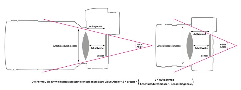 A wider value angle gives more flexibility for lens design and allows for more light and less digital correction.