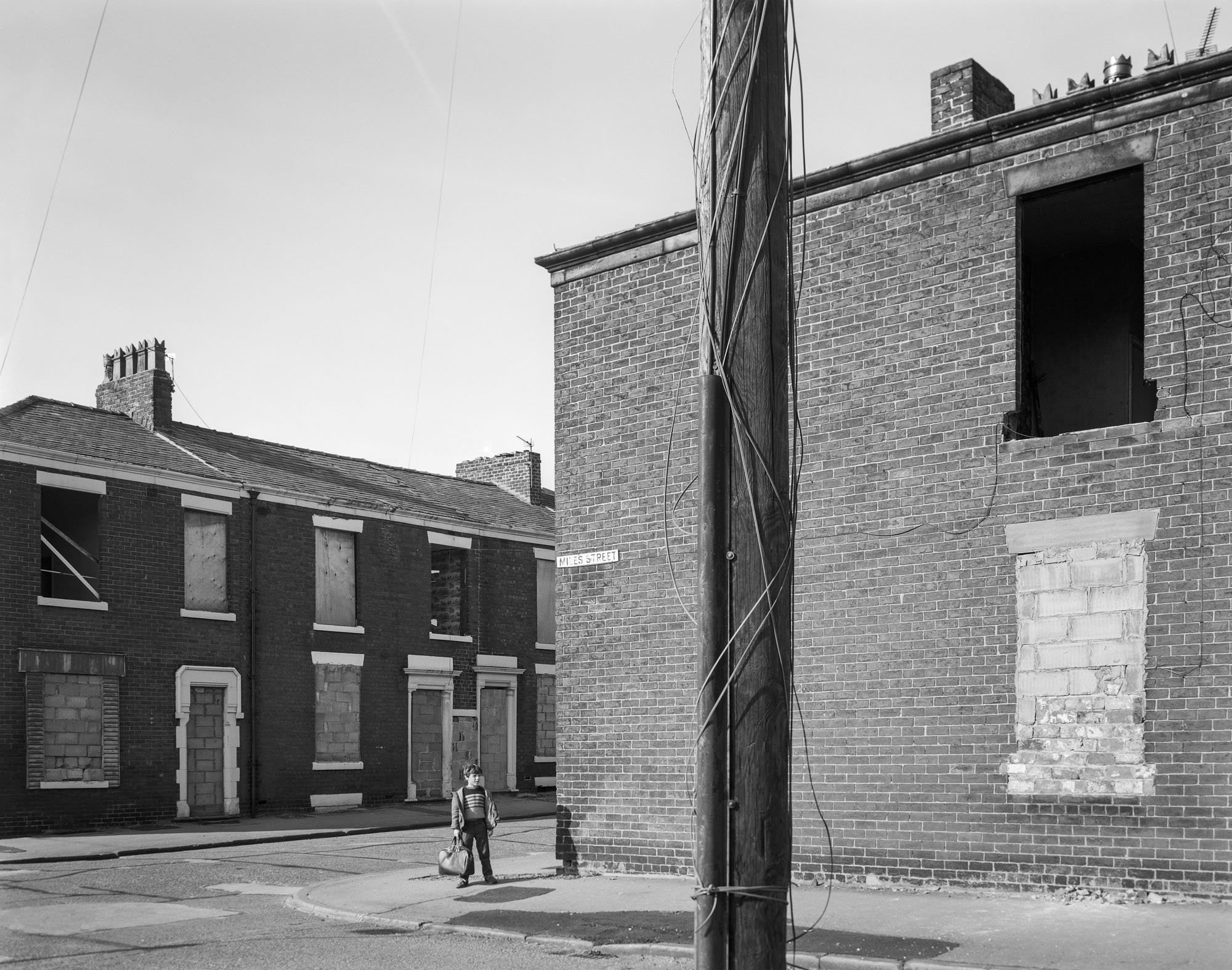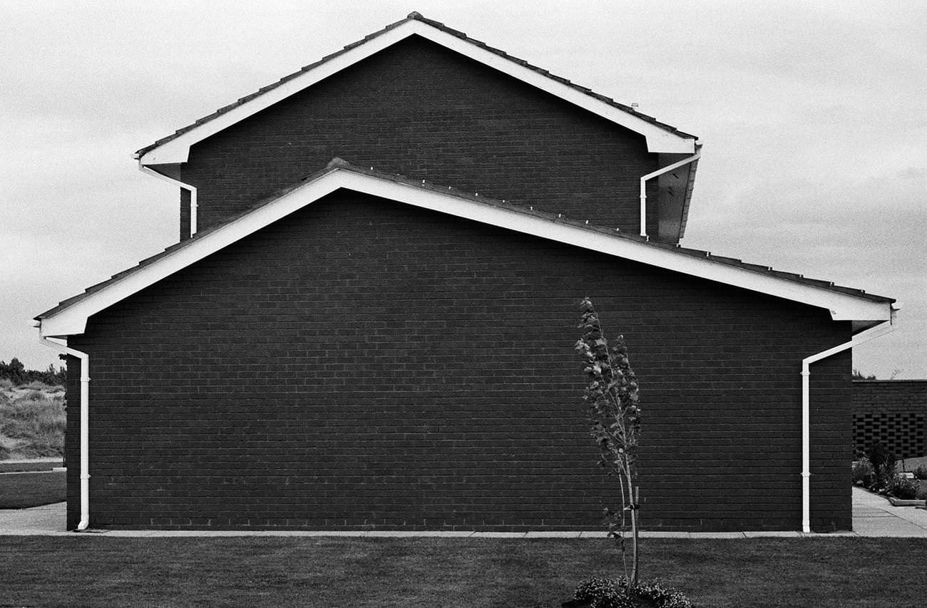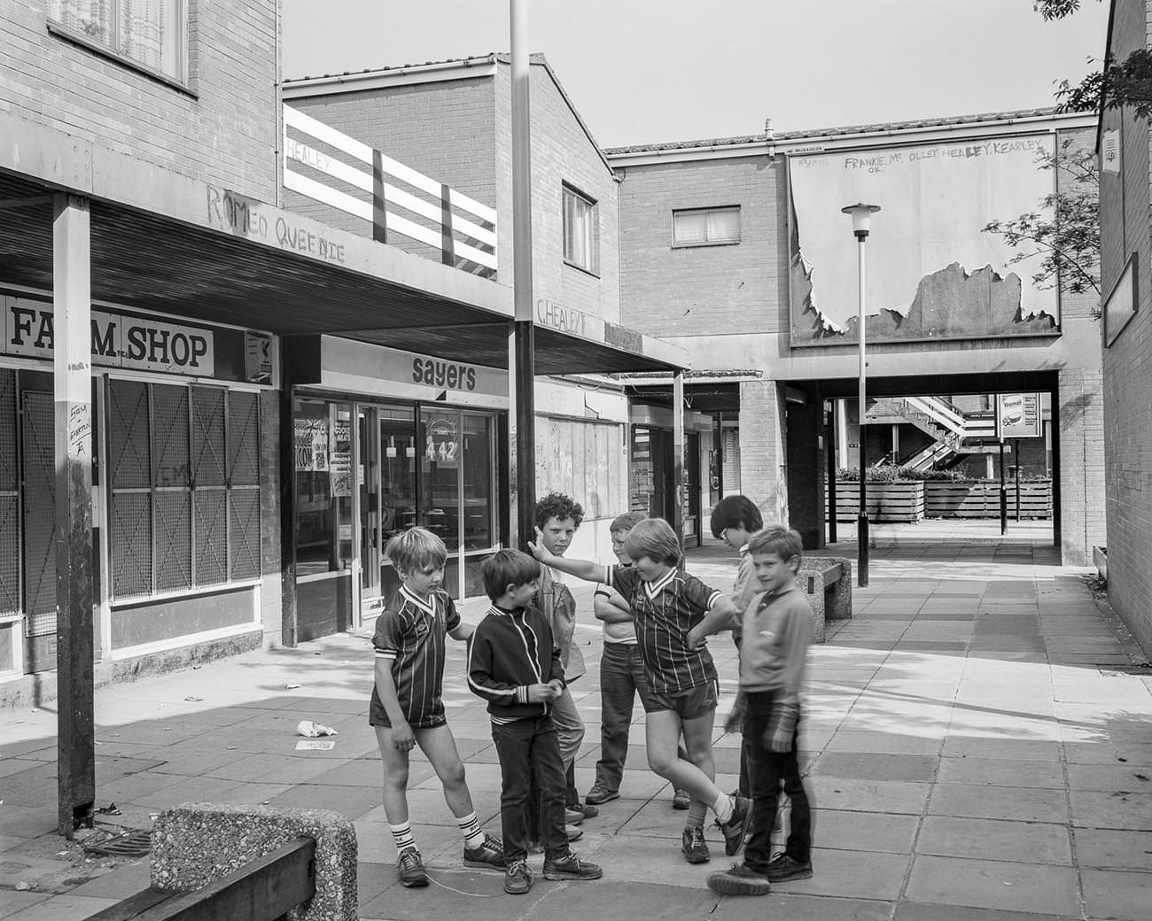Among McCoy’s earliest projects, Housing Estates (1979–1983) examined the stark geometry of new developments in Ainsdale, beginning with high-contrast black-and-white images that emphasised shadow and repetition, and later evolving into colour typologies of identical bungalows marked by subtle individual modifications. During the same years he photographed demolition sites in Liverpool and Preston, capturing transitional landscapes poised between destruction and renewal. In 1983 he served as photographer-in-residence in Skelmersdale, producing images of everyday life in a new town shaped by overspill populations from Merseyside and the decline of 1970s industry.