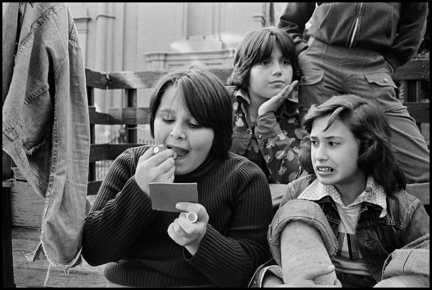 The role of women has been a focal point of Meiselas’ work ever since the 1970s. In her first major photographic essay entitled Carnival Strippers (1972–1975), she showcased the working conditions of women who earned a living working as strippers at fairs in New England. She combined her photographs with audio recordings of the women, their clients, and their managers. In this project Meiselas depicts the reality of life for these protagonists and lets them tell their own stories, thereby strengthening their feeling of self-worth and their personal identity.