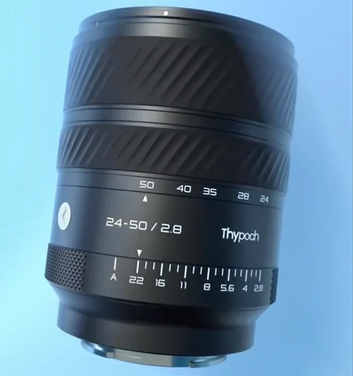 Thypoch has indicated that it is developing its first autofocus zoom lens, marking a departure from its existing lineup of manual focus prime lenses. The product, identified as a 24–50mm f/2.8, has been briefly previewed through official social media channels and shown in early form at The Photography & Video Show in Birmingham.