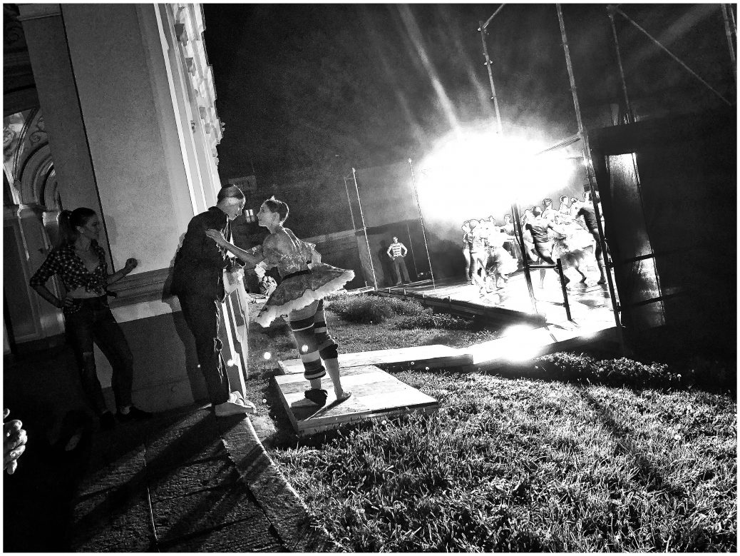A highlight was meeting some relatives of mine in Ukraine for the first time. One evening in Odessa, we discovered an open air performance by the national ballet with a live orchestra. It was breathtaking. I caught this image from behind the stage. A principal ballerina waiting for her entrance. Having an intimate conversation with a fellow dancer while still wearing her warm-up leggings.