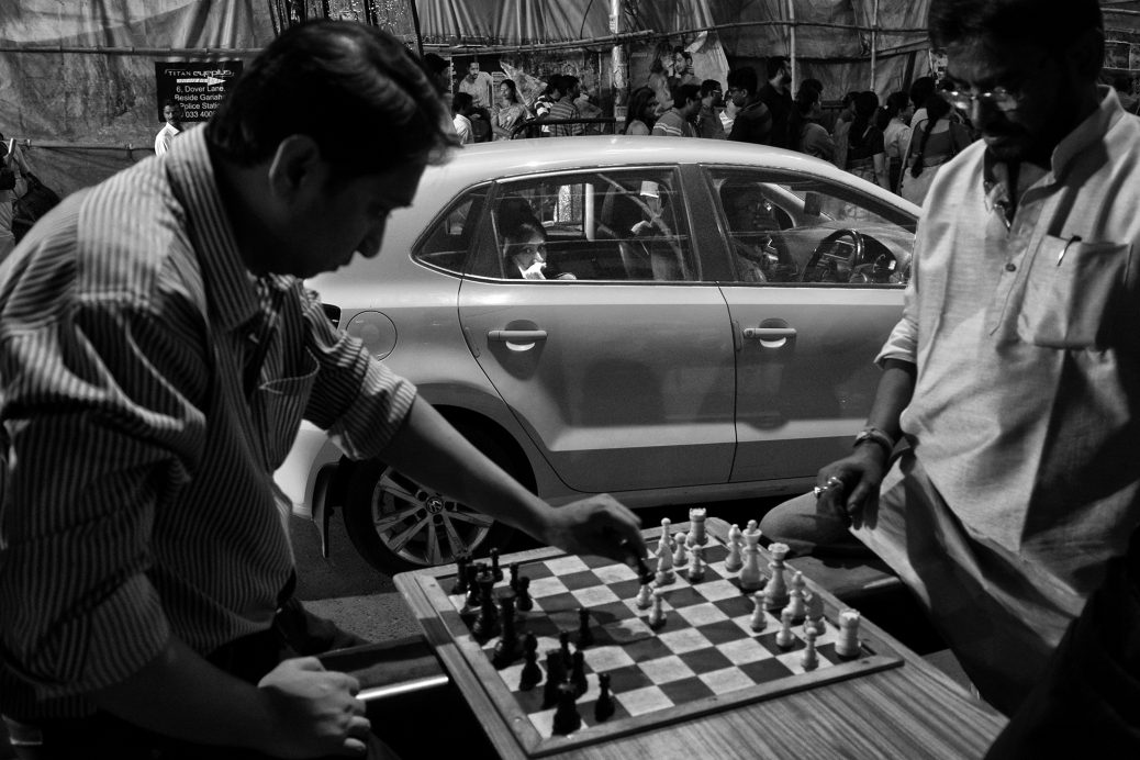 The spectator A woman looks at the road side chess players from her car waiting at the red signal Kolkata, India 0 likes
